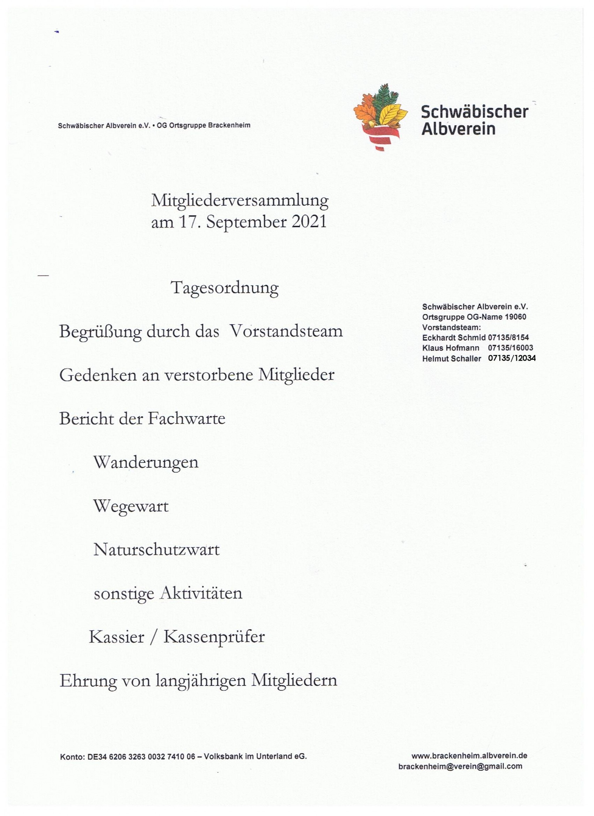 Am Freitag 17.9.21 um 19:00 Uhr findet unsere Hauptversammlung im TSV Vereinsheim in Meimsheim statt